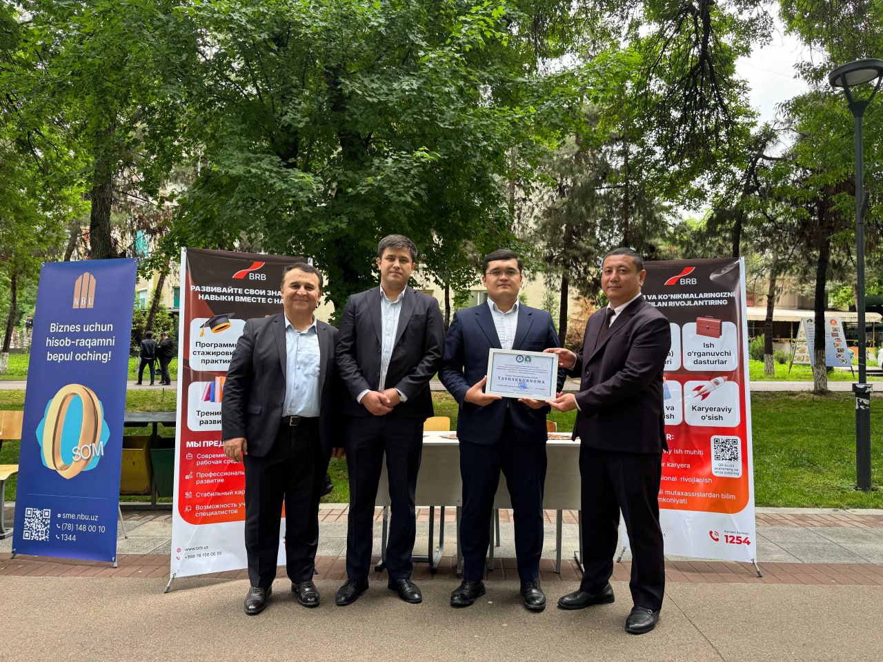 Tadbir yakunida O‘zbekiston Milliy universiteti rahbariyati tomonidan “Biznesni rivojlantirish banki” ATB Boshqaruv raisining birinchi o‘rinbosariga yosh kadrlar salohiyatini oshirishga qo‘shgan hissasi va o‘zaro samarali hamkorlik uchun maxsus tashakkurnoma topshirildi.